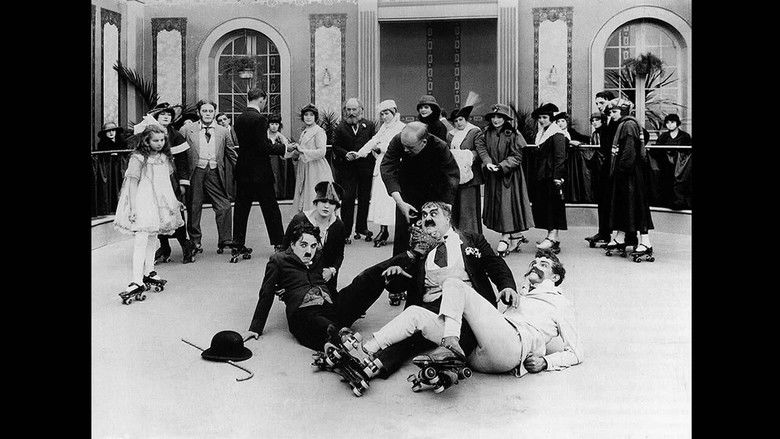 Charlie Chaplin treibt sein Unwesen auf einer Rollschuhbahn.